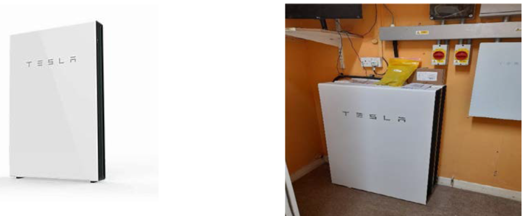 The ‘Tessla Powerwall 2’ is a rechargeable Lithium-ion battery storage system that can be used to power the building during the evenings or poor weather conditions.